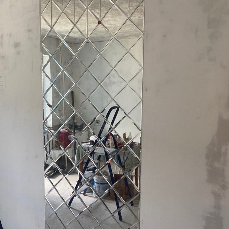 Использована зеркальная плитка "вытянутый ромб" с фацетом.